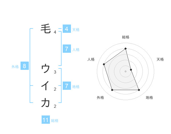 毛 ウイカさんの総格は11画の4点!