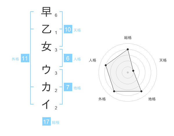早乙女 ウカイさんを姓名の画数から五運を鑑定