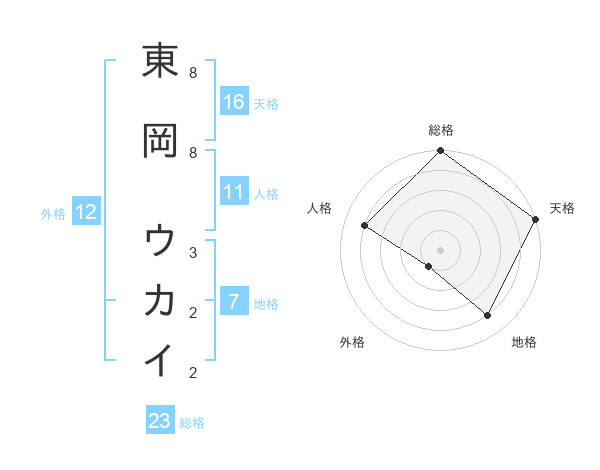 東岡 ウカイさんの天格は16画の5点!