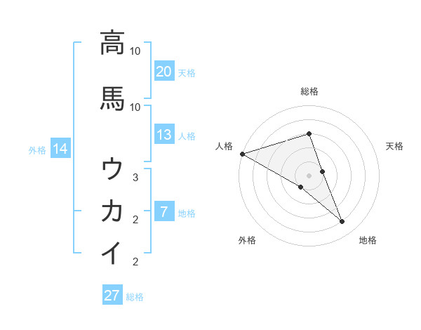 高馬 ウカイさんの総格は27画の3点!