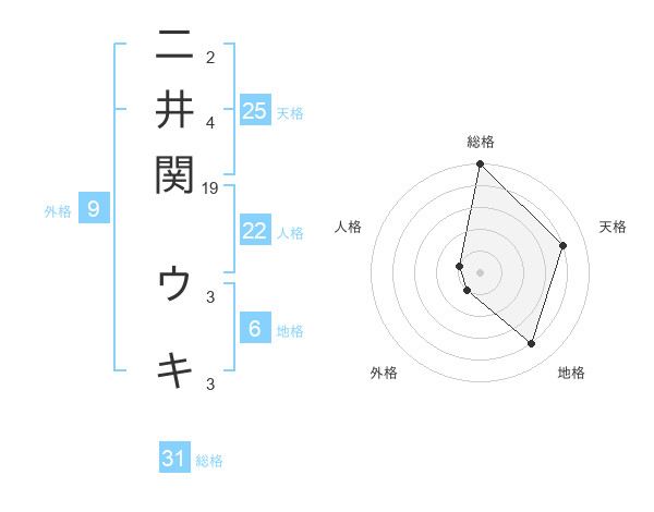 二井関 ウキさんの総格は31画の5点!