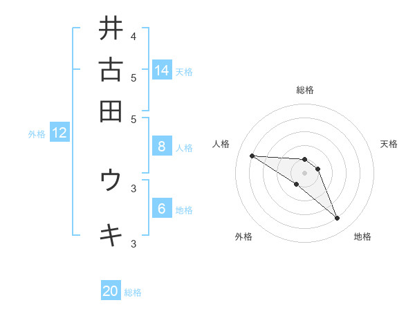 井古田 ウキさんを姓名の画数から五運を鑑定