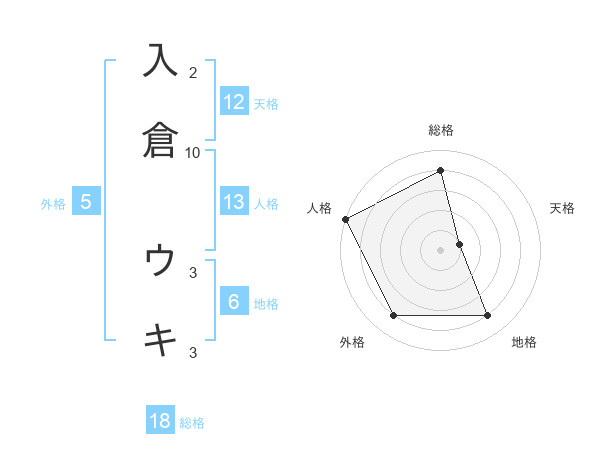 入倉 ウキさんを姓名の画数から五運を鑑定