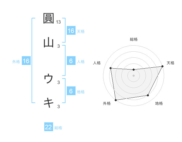 圓山 ウキさんを姓名の画数から五運を鑑定