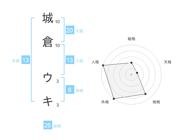城倉 ウキさんの天格は20画の1点!