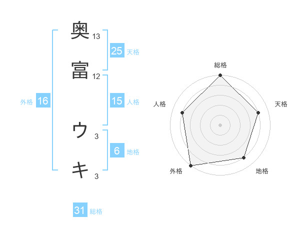 奥富 ウキさんを姓名の画数から五運を鑑定