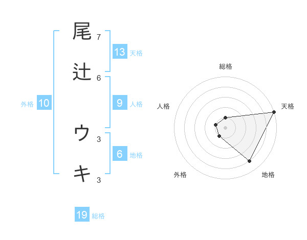 尾辻 ウキさんの天格は13画の5点!