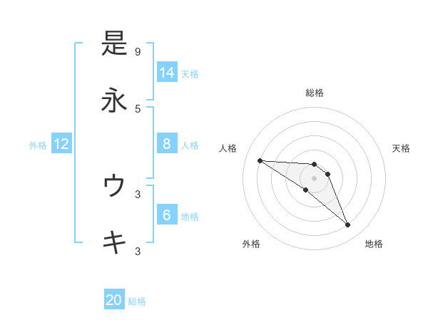 是永 ウキさんの総格は20画の1点!