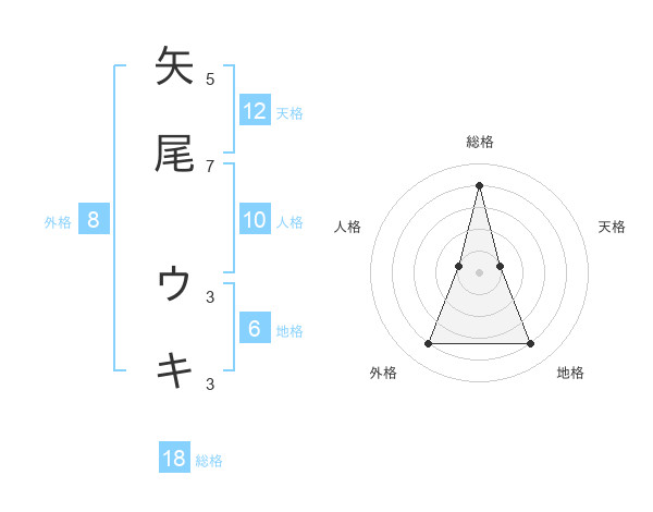矢尾 ウキさんの総格は18画の4点!