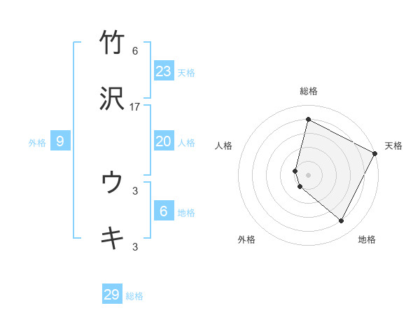 竹沢 ウキさんの総格は29画の4点!