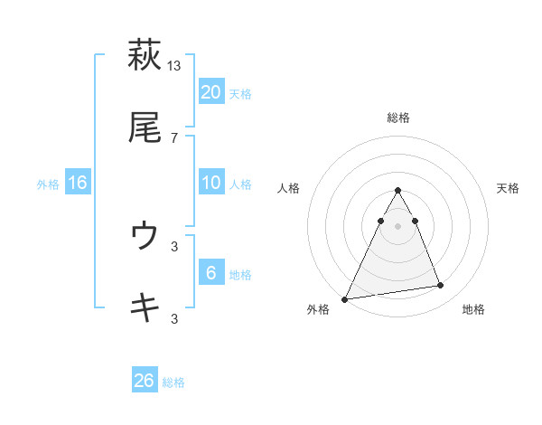 萩尾 ウキさんの総格は26画の2点!