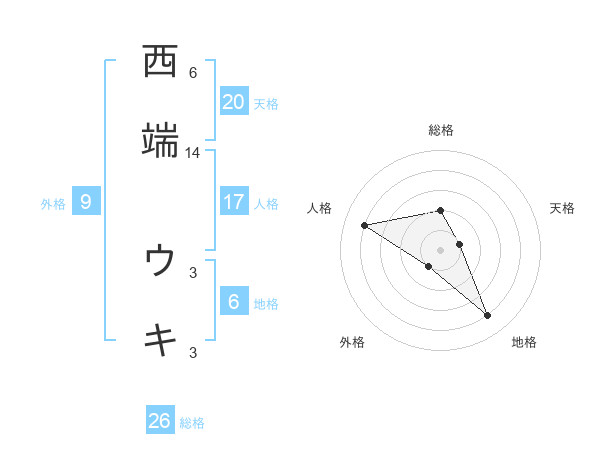 西端 ウキさんの総格は26画の2点!