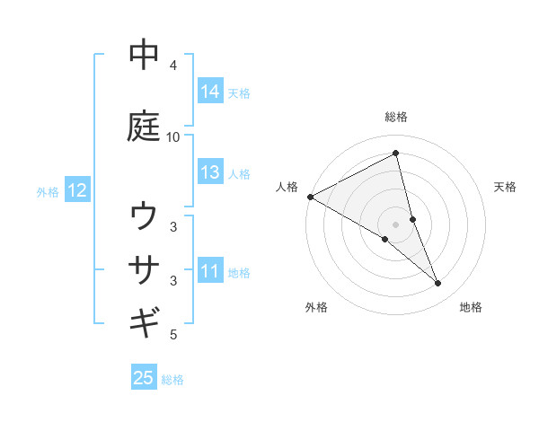 中庭 ウサギさんを姓名の画数から五運を鑑定