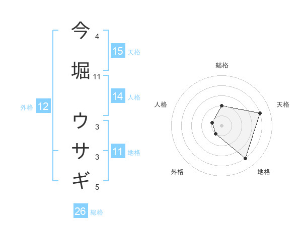 今堀 ウサギさんを姓名の画数から五運を鑑定