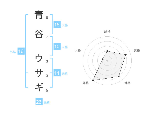青谷 ウサギさんを姓名の画数から五運を鑑定