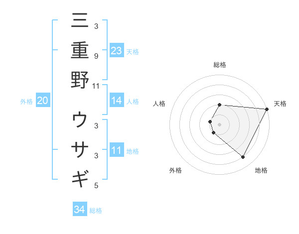 三重野 ウサギさんの天格は23画の5点!