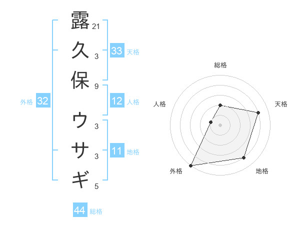 露久保 ウサギさんを姓名の画数から五運を鑑定