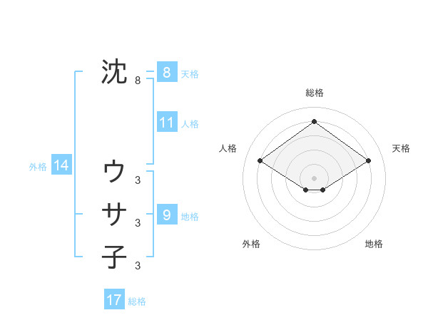 沈 ウサ子さんを姓名の画数から五運を鑑定