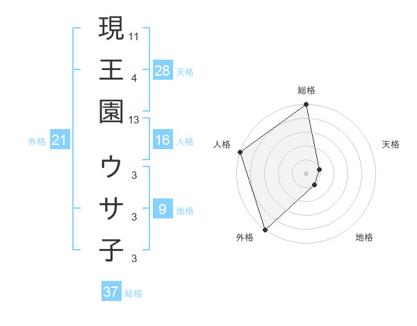 現王園 ウサ子さんを姓名の画数から五運を鑑定