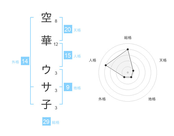 空華 ウサ子さんの総格は29画の4点!