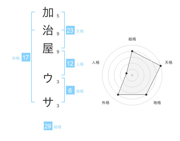 加治屋 ウサさんを姓名の画数から五運を鑑定