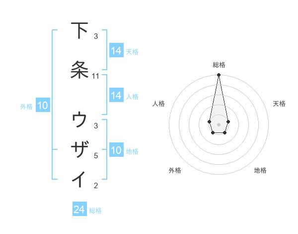 下条 ウザイさんを姓名の画数から五運を鑑定