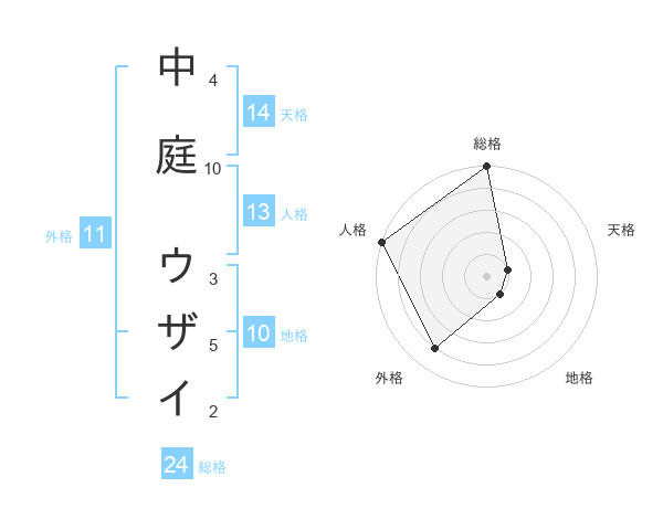 中庭 ウザイさんを姓名の画数から五運を鑑定
