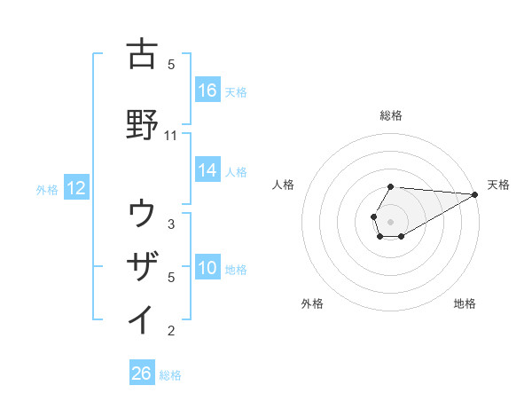 古野 ウザイさんを姓名の画数から五運を鑑定
