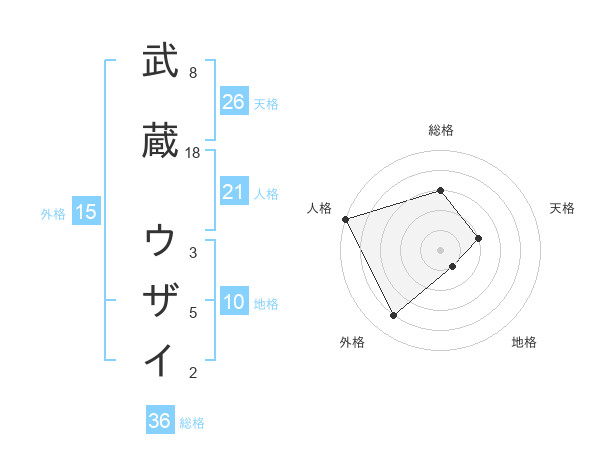 武蔵 ウザイさんを姓名の画数から五運を鑑定