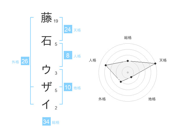 藤石 ウザイさんの総格は34画の2点!