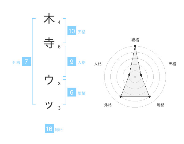 木寺 ウッさんの総格は16画の5点!