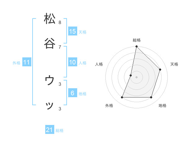 松谷 ウッさんを姓名の画数から五運を鑑定