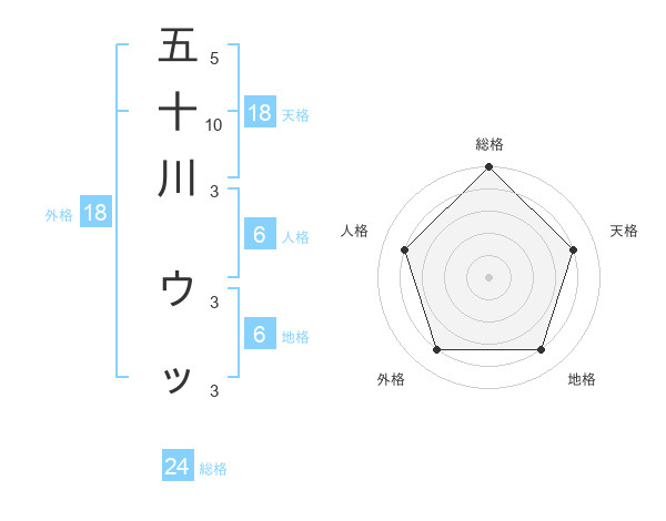 五十川 ウッさんの総格は24画の5点
