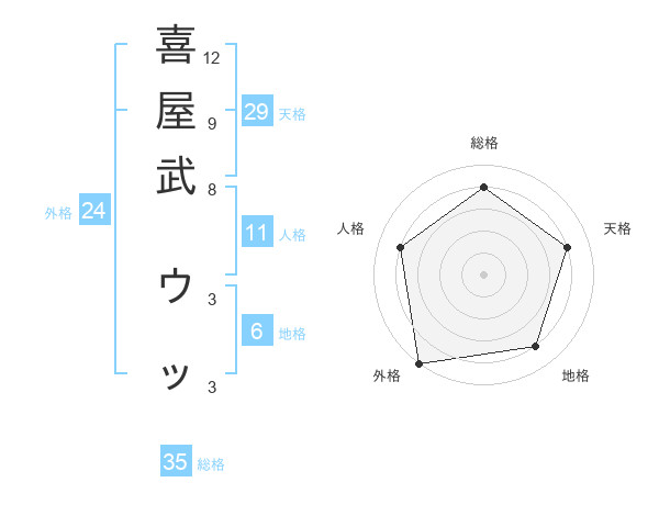 喜屋武 ウッさんを姓名の画数から五運を鑑定