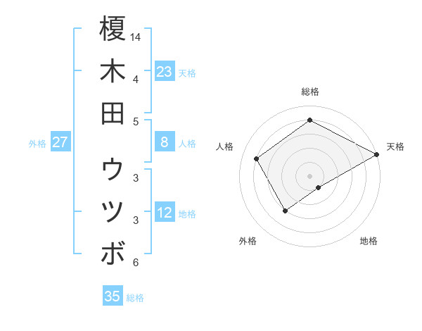 榎木田 ウツボさんを姓名の画数から五運を鑑定