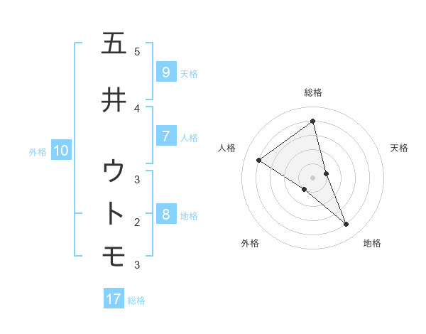 五井 ウトモさんの総格は17画の4点!
