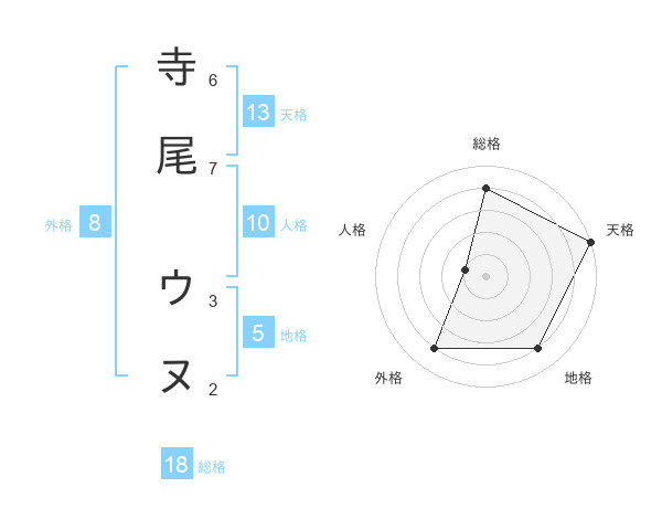 寺尾 ウヌさんを姓名の画数から五運を鑑定