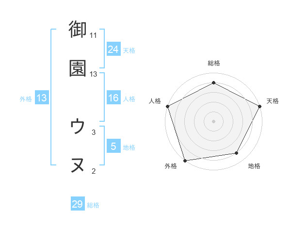 御園 ウヌさんを姓名の画数から五運を鑑定