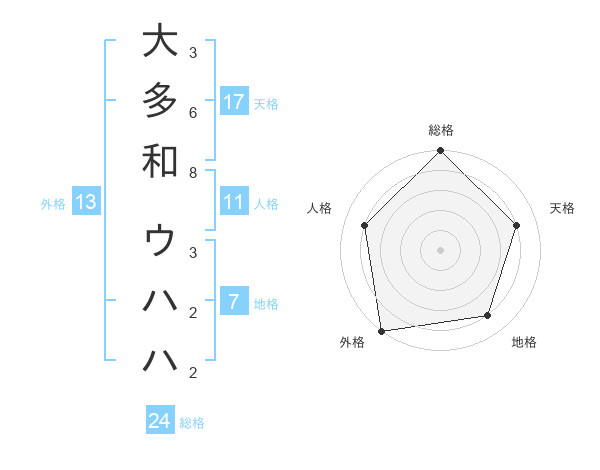 大多和 ウハハさんの総格は24画の5点!