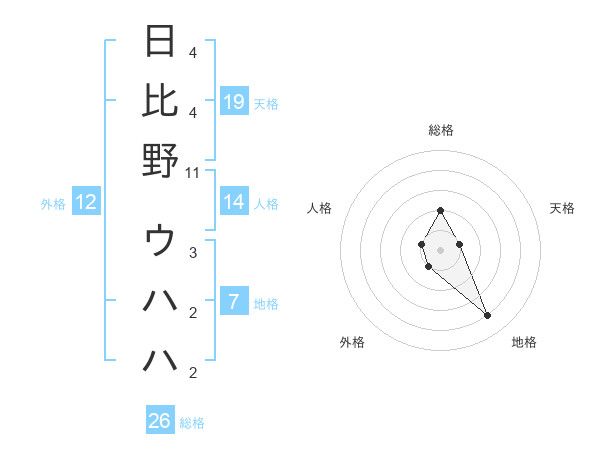 日比野 ウハハさんの総格は26画の2点!