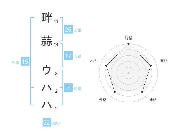 畔蒜 ウハハさんを姓名の画数から五運を鑑定