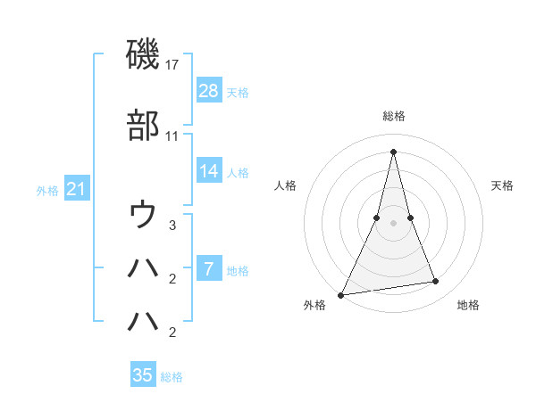 磯部 ウハハさんの総格は35画の4点