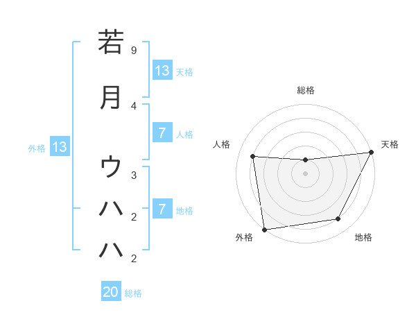 若月 ウハハさんの外格は13画の5点!