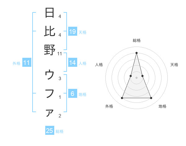 日比野 ウファさんを姓名の画数から五運を鑑定