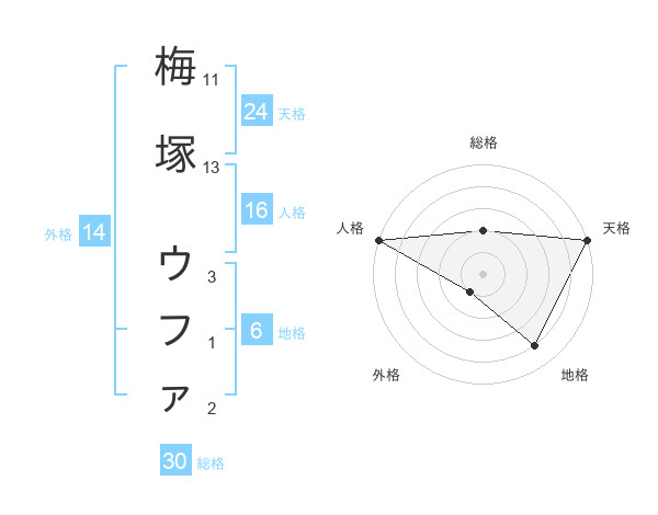 梅塚 ウファさんを姓名の画数から五運を鑑定