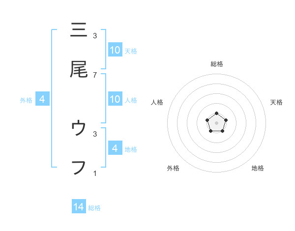 三尾 ウフさんを姓名の画数から五運を鑑定