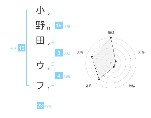小野田 ウフさんの外格は15画の4点!