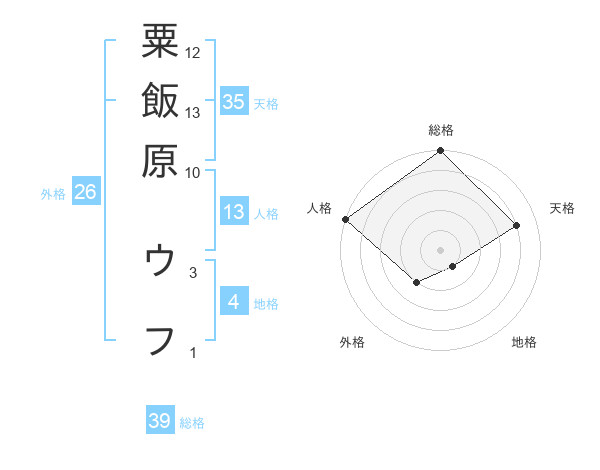 粟飯原 ウフさんを姓名の画数から五運を鑑定