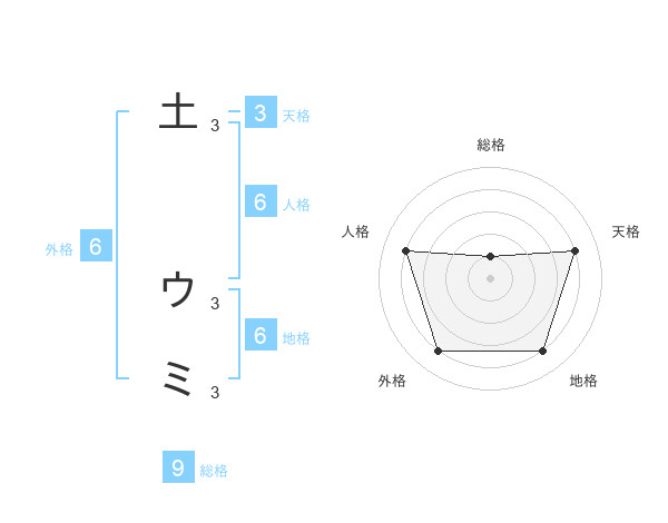 土 ウミさんの総格は9画の1点!
