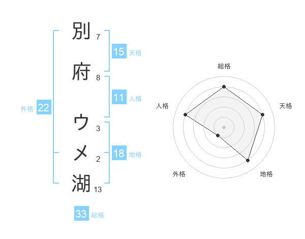 別府 ウメ湖さんを姓名の画数から五運を鑑定